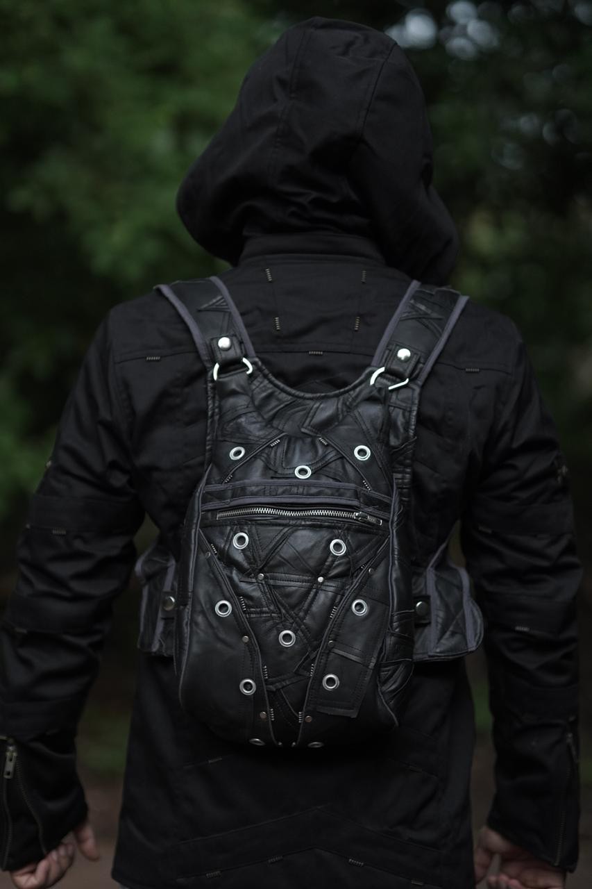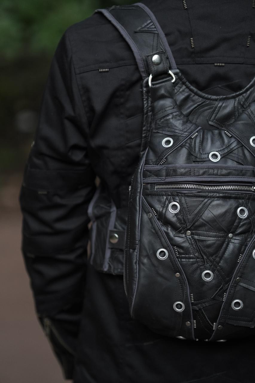 Step into bold streetwear style with our cosmic tribe Black Multi-Pocket Patch Leather Ninja Bag, designed for streetwear, psytrance, and alternative festival fashion. Functional, stylish, and comfortable for all-day use.